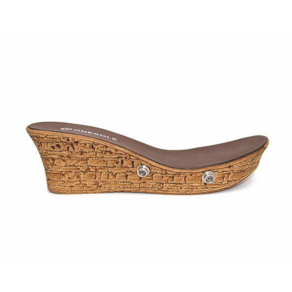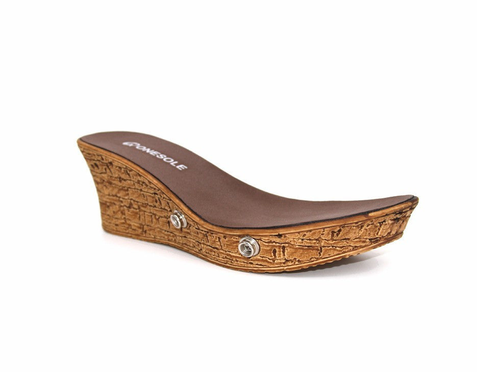 Casual is a corky looking sole. Very similar in shape and height to the Elegance, and is a summer classic. About 2 1/2" tall in a wedge shaped heel. This style is a "most wanted" among all!