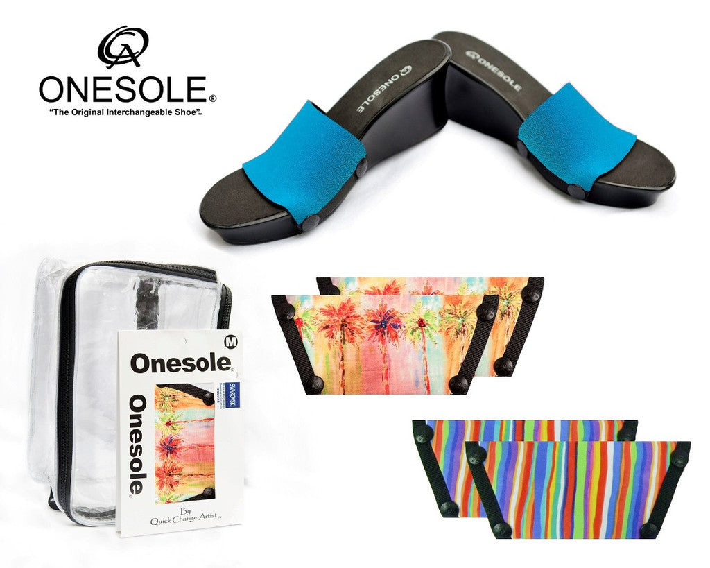 Elegance - Resort / Cruise Travel Kit This survival kit will take you through your vacation in a snap. Pack includes one pair of black elegance soles, a solid turquoise top, a breezy palms top, and a CDT698 top in a reusable travel case. This kit makes the perfect gift for anyone who loves shoes! All you will need for your next cruise, are one sole and a couple of tops and you will be ready to go!
